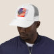 Antiqued styled United States OF America USA flag cap in blue red and white. Reads God bless America. Designed exclusively by Sarah Trett.