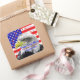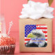 Great stickers that are bold and bright and in vivid colours. Easily add any custom text to these red, white, and blue patriotic illustrated shooting stars and stripes design stickers with a great photograph of a bald American eagle in the middle all with a backdrop of the American flag. Great as retail business sales and promotional stickers or even for the new eagle scout or election day voter giveaways. Get lots of these to have on hand for Memorial Day, Veterans Day, July 4th, Labour Day, and Election Day. Shown is the popular round shape sticker. Add any text or just delete the sample text if not needed. Make great envelope seals and special event favours too!