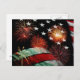 United States of America flag with fireworks patriotic celebration of Independence day, July 4th or just patriotic spirit custom postcard