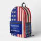 Personalised American flag backpack with glitter name - 17" durable school/travel bag for patriotic kids & teens.
