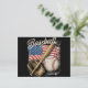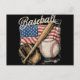 American Flag Baseball Player Bat Fan Catcher Pitc Holiday Postcard
