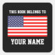 American flag bookplate sticker for library and school books. This book belongs to school book sticker. Custom bookplate labels personalised with name. Personalised school supplies for boys and girls. patriotic USA pride design. Available in square and other shapes. Custom back to school supplies for child, parents, teacher etc. Grammar / elementary school accessories.