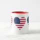 The perfect patriotic coffee mug that's available in 11 or 15 oz.. The outside of the combo mug features a bright white base while the rim & handle are vividly glazed in a rich colour. Flag design is also available on several other styles like a frosted glass mug & stainless steel travel mug!