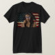 A rustic American Flag distressed edge with a woman with USA inspired sunglasses.