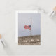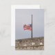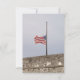 This design features an original photograph showing the flag of the United States of America flying at half-mast. Flying a flag at half-mast is traditionally seen as a symbol of respect, mourning or commemoration. The US flag consists of thirteen equal horizontal stripes of red alternating with white, with a blue rectangle in the canton bearing fifty small, white, five-pointed stars arranged in nine offset horizontal rows; rows of six stars (starting at the top and bottom) alternate with rows of five stars. The 50 stars on the flag represent the 50 states of the United States of America, whereas the 13 stripes represent the thirteen British colonies that declared independence from the Kingdom of Great Britain, becoming the first states in the USA. The flag of the United States of America is sometimes known as the Star-Spangled Banner, Old Glory or the Stars and Stripes.