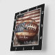 This patriotic wall clock blends American football elements with a vivid U.S. flag design, perfect for showcasing national pride and love for the game. A bold and functional decor piece for homes, offices, or sports-themed rooms, it’s ideal for any proud football fan or enthusiast.. It is highly customisable, allowing for changes to the "Team Name" and "K.Smithright" text, as well as the colours of the clock's border and numbers (1-12) to match specific team colours. This makes it an ideal personalised gift or decor for sports fans, football teams, or themed game rooms.