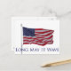 a photo of the veteran's memorial flag in bellingham, wa proudly waving on a breezy day with "long may it wave" in matching blue script. left blank inside for your own custom message.