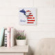 American flag pattern on Michigan on white wood pattern with blue star for home location.