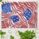 Towels feature 4th of July pattern with flags and patriotic imagery