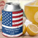 Add the finishing touch to your patriotic party with this USA American Flag can cooler in a distressed worn design. This united states of america flag can cooler is perfect for fourth of July party, Memorial day party decor, family reunions, military graduation or retirement party favours and patriotic celebrations. Personalise this american flag can cooler with family name and event.