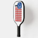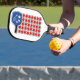 Show off your love for pickleball and America with a red, white, and blue American flag made from a blue pickleball paddle with white stars and rows of red pickleballs on a white background. Super fun pickleball paddle for an Independence Day pickleball tournament, or Fourth of July pickleball party. Colourful pickleball-themed gift for your pickleball-loving mum, dad, uncle, aunt, brother, sister, neighbour, grandpa, grandma, husband, wife, friend, or work colleague who won't stop talking about pickleball.