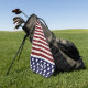 American Flag Red White Blue Stripe Flag towel. Design by Sandy Closs