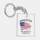 Fun classy patriotic keychain with cool red, white and blue American flag pattern design and AMERICA THE SPIRIT OF FREEDOM EST. 1776 text in classic typography lettering.