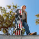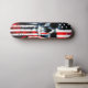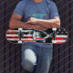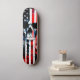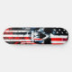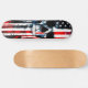 USA American Flag skull skateboard in a distressed grunge design.Cool Urban design showing united states of America flag skateboard design with stars and stripes in red white and blue with a human skull overlay