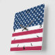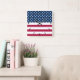 Square Wall Clock, wall art decoration and home furnishing decor accessory printed with American Flag Stars And Stripes red white and blue artwork design by TheFabricSeal at Zazzle.com #ZazzleMade