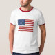 American Flag t-shirt. Show your love for the USA with a patriotic t-shirt, button, or gift! Great for 4th of July, or anytime to celebrate the USA!
