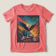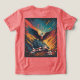 This vibrant and dynamic artwork depicts a powerful bald eagle soaring above an American flag, set against a backdrop of bold colours and abstract brushstrokes. The image evokes a sense of patriotism, freedom, and national pride.