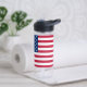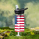 A great water bottle for proud Americans and anybody who loves the United States of America. With the stars and stripes of the US national flag wrapping all the way around the bottle. Great for proud Americans and anybody who loves the United States. Makes a fun Fourth of July gift idea!