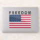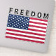 The word "FREEDOM" printed in white, accompanied by a graphic of the American flag,