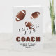 American Football Ball Thank you Coach Card. The card has football balls. Great card for thanking sports coaches, high school team trainer, mum or dad coach, etc. Customise any text on the card. Add the coach`s name, team name and year.