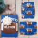 American Football Balls Name Blue Christmas Wrapping Paper Sheets. Personalise with your name. You can change the Merry Christmas text.