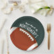 Customisable paper plates in 2 SIZES - 9" and 7" feature an American football on dark green and the words "It's Game Day!" along with your name. MORE colours and matching items in our store.