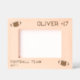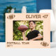 Show off your pride for your favourite American football player by displaying their photo in this etched wooden frame with an American football theme, personalised with the player number, name, and team name and the year too with engraved footballs in the corners. American football themed photo frame personalised with name, number, and team name to show off your son's best moment on the field, memorialised in a perfect snapshot and shown off in this custom photo frame with custom text and football icons. A great addition for your work desk or your son's bedroom or for the grandparents who of course are equally proud of their football star grandson.