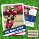 Introducing the epitome of American football memorabilia: our customisable Football Trading Card! Immerse yourself in the electrifying world of gridiron glory with this meticulously crafted card, boasting the iconic red, blue, and white stripes reminiscent of the star-spangled banner itself.