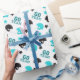 American Football Turquoise Blue and Black Pattern Wrapping Paper