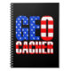 Geocacher text with elements of the American flag is a unique gift design for your favourite American cacher.