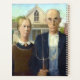 American Gothic is a 1930 painting by Grant Wood in the collection of the Art Institute of Chicago. Shown is a farmer holding a pitchfork and his spinster daughter in front of their house (the dribble house). A Famous and iconic fine art painting of the 20th century. Style: Regionalism, Social realism, Modern art. This version is a Digital oil painting reproduction.