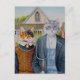 "American Gothic Parody Kitty Cats" Watercolor Art Postcard by artist Jean Weiner