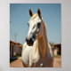 Photo of a magnificent American horse among the houses of Texas A horse of Arabian origin with a beautiful light colour