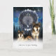 An American Indian Wolf Style Greeting Card forBirthay, Blended Wolves and with the moon and blended sky in the background, and a feathered dream catcher