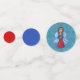 This table confetti has large blue circles with gold stars and an American angel in a red white and blue dress holding the USA flag. The medium circles are dark blue and the small circles are bright red.