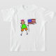 The t-shirt feels and looks great quality, a good thick cotton. It will be a little big for my son, but that means he will be able to wear it and not out grow it too soon. The print was as described on the order when personalised. True size, shape and colour T-shirt- thanks.