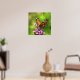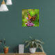 This poster is a colourful celebration of summer! A gold, orange, brown and white American Lady Butterfly is perched on a lovely magenta verbena blossom. The luminous green background just glows with light.