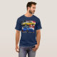 American Muscle Camaro Flag Shirt features a 1969 Camaro SS and a 2010 Camaro SS against an American Flag and the words American Muscle.