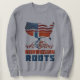 American Norwegian Roots Sweatshirt. Norwegian Roots design, featuring a map of the US with Norway and American flags. Perfect for Americans proud of their Norwegian ancestry and for ex-pats in the USA! Ideal for t-shirts, hoodies, hats as well as great gift ideas inc. cell phone & iPad covers, mugs, bags, key rings, stickers, greetings cards, business cards, kitchen towels, luggage tags, bumper stickers, laptop sleeves, buttons etc. Items can be customised so you can add your own personal touch!