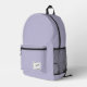 This american nostalgia style classic backpack in lilac purple features a patch style emblem with a monogram name and framed border, featuring informal handwritten script and modern block typography. The text can be customised with your name for a design as unique as you are!