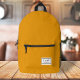 This american nostalgia style classic backpack in mustard yellow features a patch style emblem with a monogram name and framed border, featuring informal handwritten script and modern block typography. The text can be customised with your name for a design as unique as you are!