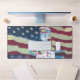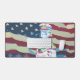 For the proudest patriots, this desk mat features a geometric illustration of a proud soldier standing strong in front of the American flag.