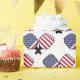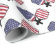American symbols pickleball wrapping paper with two crossed pickleball paddles. Red, blue and white.