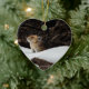 This adorable American Pika is peeking his head out from his safe place into a beautiful snowbank.All on a beautiful heart-shaped ornament.