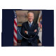The photograph captures a moment in time before president elect Joe Biden appointed office of Vice President of the United States. Sunlight streams through a window, casting a warm glow on the figure of an Biden standing confidently in the center of the frame. His arms are crossed, a gesture that suggests both authority and a hint of casual ease. --- Mr. Biden is dressed impeccably in a dark suit, the crisp fabric contrasting sharply with the clean lines of his white shirt. A blue and white striped tie adds a touch of personality to the ensemble. --- A glimpse of patriotism is evident in the background. An American flag stands proudly on a pole to the man's right, its vibrant colors a subtle counterpoint to the cool blue of the wall behind him. A closer look reveals a painting hanging on the wall, adding a touch of personal flair to the professional atmosphere. --- Soon to be Vice President Biden is the focal point of the image. His short white hair frames a kind face, etched with the lines of a life well-lived. A warm smile plays on his lips, conveying a sense of confidence, wisdom, and perhaps a hint of amusement.
