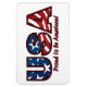 If you are proud to be American, you can show it with USA text designed with stars and stripes with PROUD TO BE AMERICAN text below it. This red, white and blue design will get you noticed!
