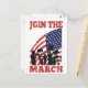 illustration of American people protesting with placard signs and stars and stripes flag that also dramatises support of the Occupy Wall Street & Occupy America protest movement with words Join the March