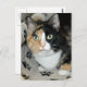This cat-themed postcard design features a digital colour photograph of a domestic (American) shorthair (DSH) calico shelter cat from Frederick County Animal Control. It makes a unique gift for cat lovers!