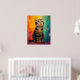 A digital painting of an American Shorthair cat with striking green eyes, sitting against a vivid abstract background of orange, blue, and pink. This expressive artwork blends realism with bold brushstrokes, capturing the charm and curiosity of the breed. Perfect for cat lovers and art collectors, this piece adds warmth and personality to any space.