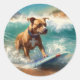 American Staffordshire Beach Surfing Painting Classic Round Sticker